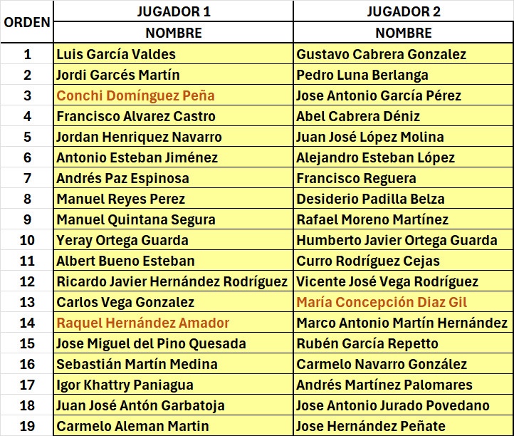 Estas son las parejas inscritas a día 28/2. A partir de ahora lista de espera…